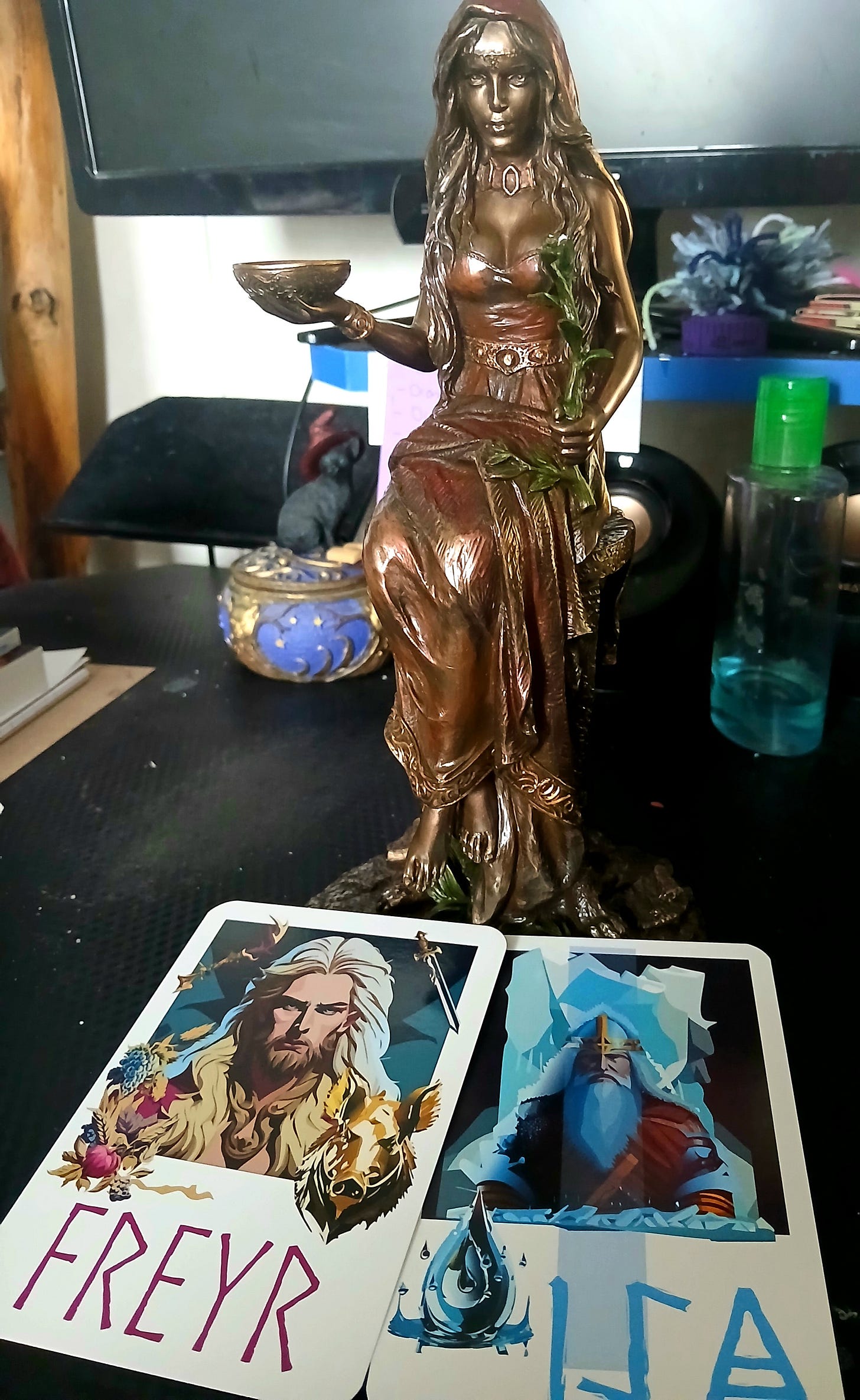 Over the last couple of years, as I’ve focused more on Seiðr and runic magiks, Freyja kinda been taking Hekate’s place. Not as a Spiritual Mother, but it makes sense. Seiðr and runes are a Northern Paganism thing, not a Hellenic one.
