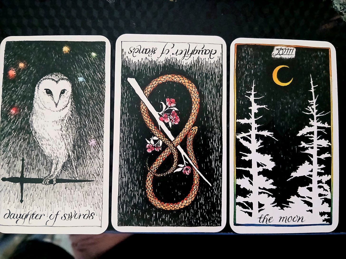 Before I dive into these cards, just at a first glance, I have a feeling Him not reaching out to me is going to be an overthinking thing. In my head thing. Mostly because of the Sword card—that suit traditionally deals with mental stuff. The Moon can also deal with anxiety and illusions that we tell ourselves.