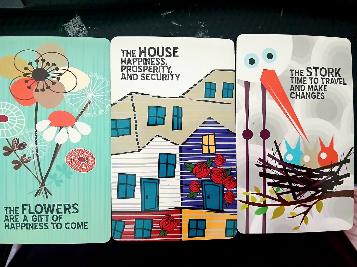 Okay, and the last deck, which is one that I usually only use for my immediate future—like, day of or the next day, which is Liz Dean’s deck—it is a Lenormand style tarot, which means that cards in certain combinations mean things. I use the booklet, but Labyrinthos explains the deck and combinations far better than I.