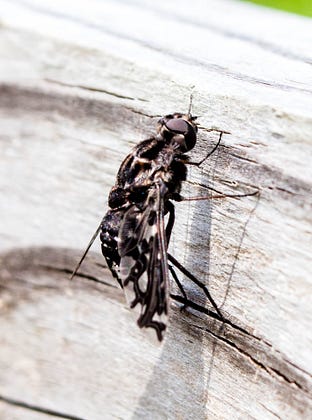 I saw this big interesting and calm fly on my deck, and took its picture. Doing a reverse image search, I learned that it’s called a Tiger Bee Fly. It’s a pollinator, whose larvae feed on Carpenter Bee larvae.
